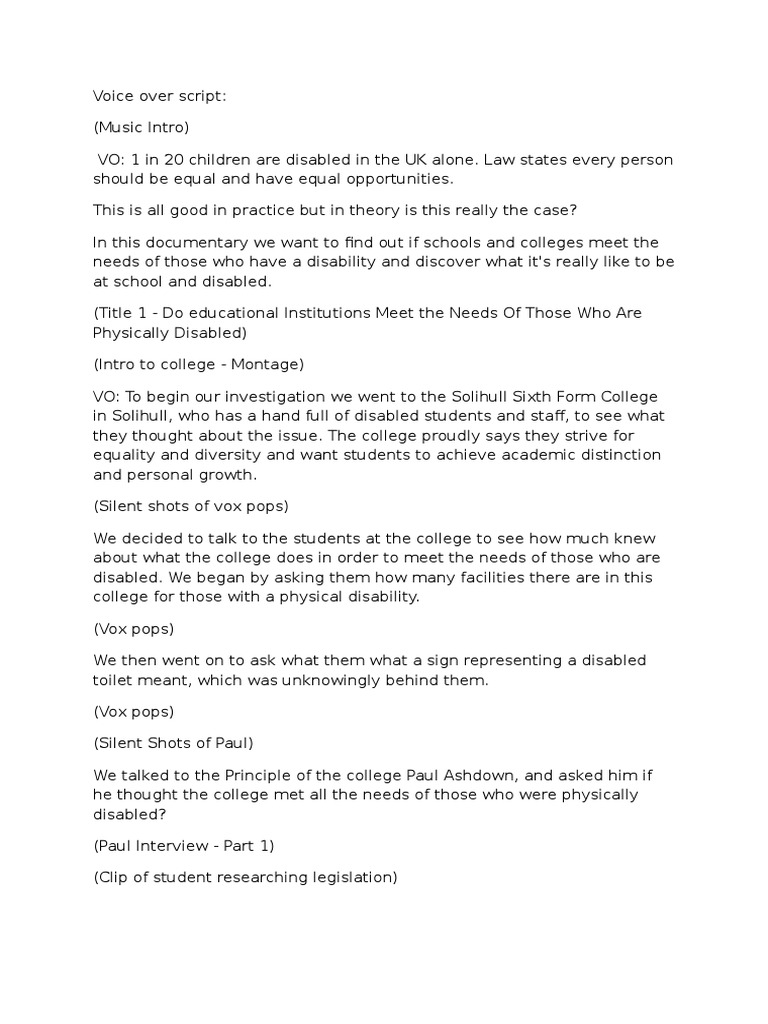 Voice over script for documntary 11